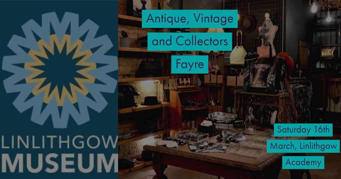 Come along to our Spring “Antique, Vintage and Collectors Fayre” run by Linlithgow Heritage Trust. The fayre is on Saturday 16th March 2019 at Linlithgow Academy from 9am – 4pm. Parking is free and entry to the Fayre is £1 (children under 14 go free). We will have 70 stalls with everything from antique jewellery to militaria and a good range of general antiques. There will also be a pop up cafe from Mannerstons serving both hot food and ice cream.