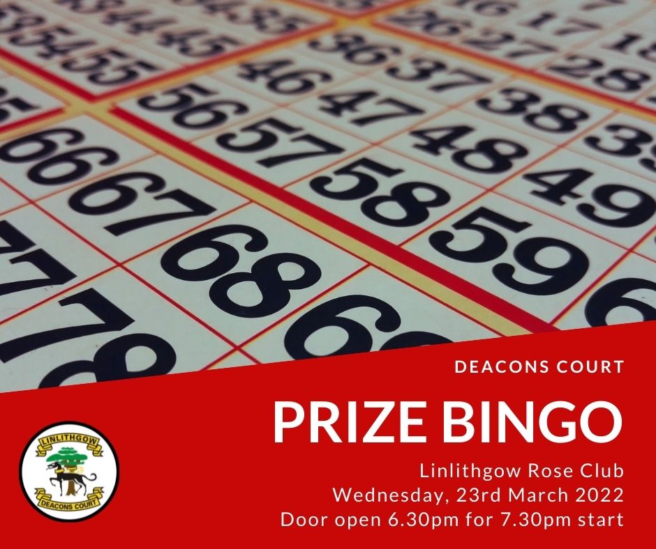 The Deacons Court Prize Bingo is back with some fantastic prizes to be won! This years Prize Bingo will take place on Wednesday, 23rd March in Linlithgow Rose