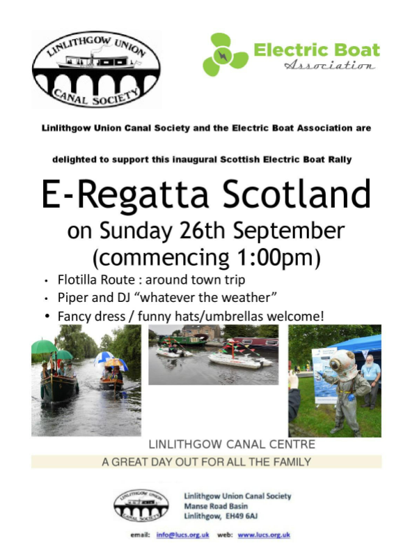 Linlithgow Union Canal Society and the Electric Boat Association are delighted to support this Inaugural Scottish Electric Boat Rally.