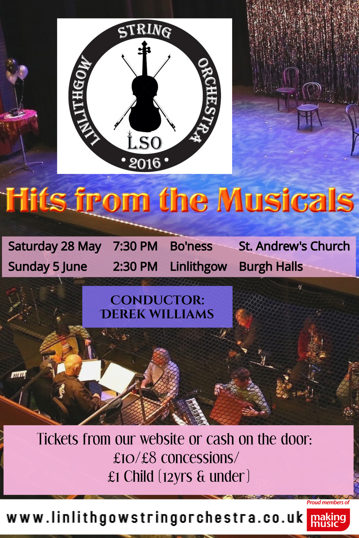 An afternoon of music in the Provost Lawrie Hall suitable for the whole family featuring ‘Hits from the Musicals’ from Cats to Queen! Great fun listening to old favorites’, reminiscing from times gone by. Perhaps you attended the theatre at a previous time and enjoyed the show? Why not listen again and spot your favourite… Tickets available to purchase on the door (cash) or click below to purchase.