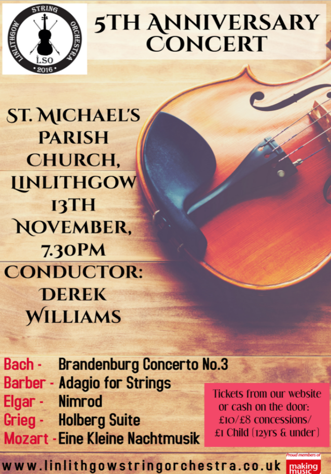 As it’s our 5th Anniversary concert at St Michael’s Parish Church on 13th November, Derek Williams, our new conductor, thought it would be nice to have a programme