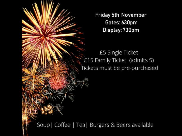 FIREWORKS UPDATE The annual fireworks night at Linlithgow Rugby Club will be held on Friday 5th November. Tickets cost £15 (family of 5) and £5