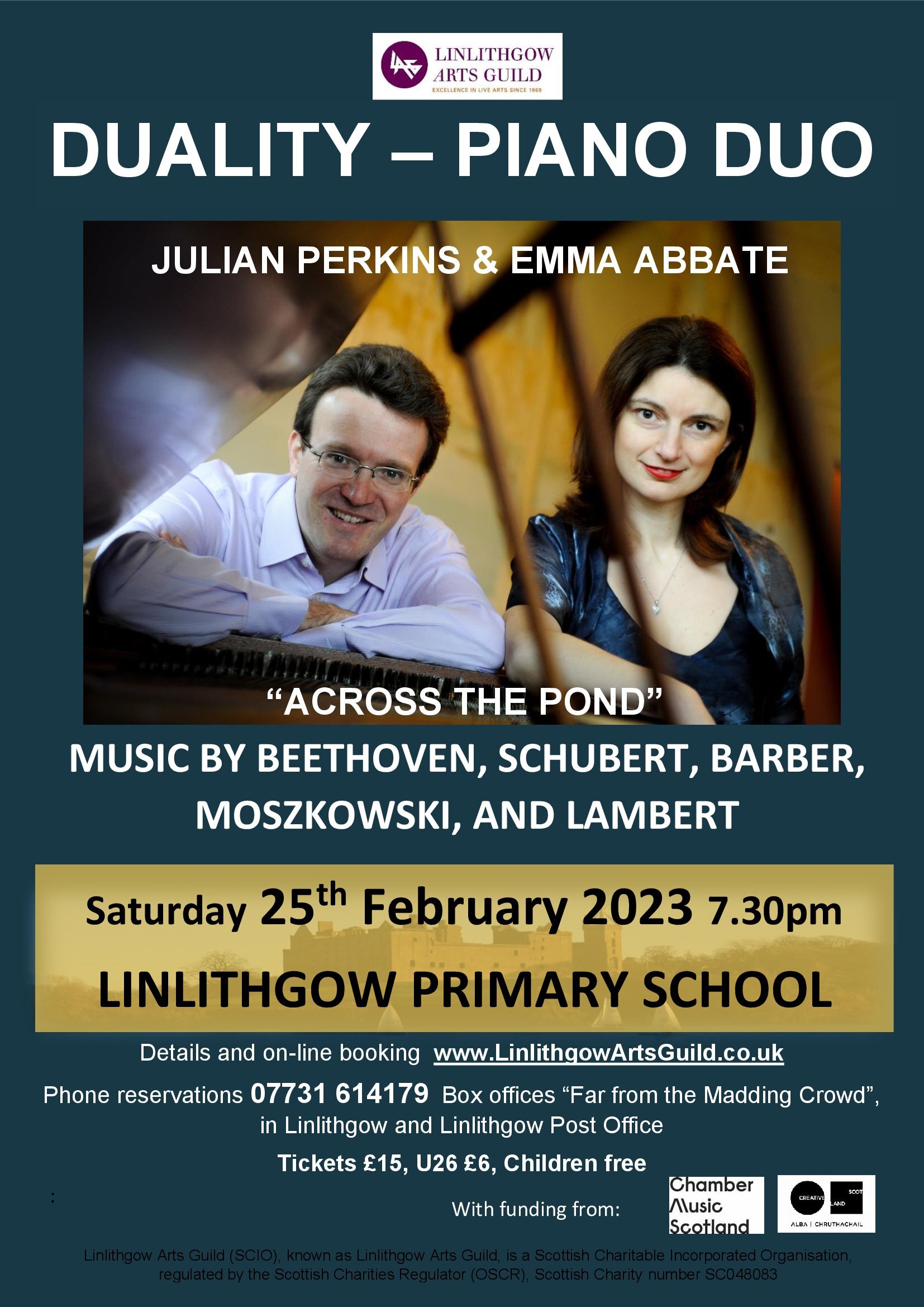 Twenty fingers on one piano in a piano duo recital presented by the Linlithgow Arts Guild. PROGRAMME’Across the Pond’Beethoven: Sonata in D