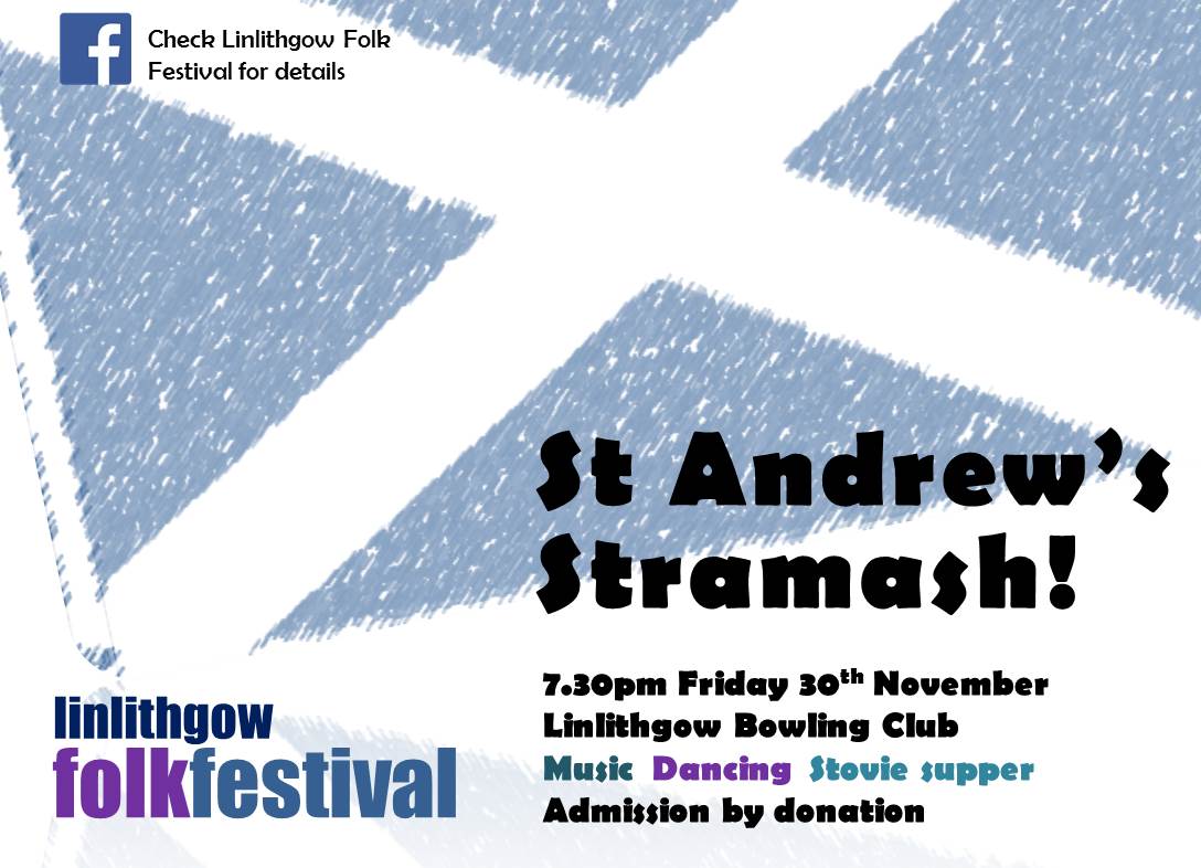 The Linlithgow Folk Festival Association will be hosting our annual St Andrew’s Stramash! on Friday 30 November 2019 and admission is by donation.