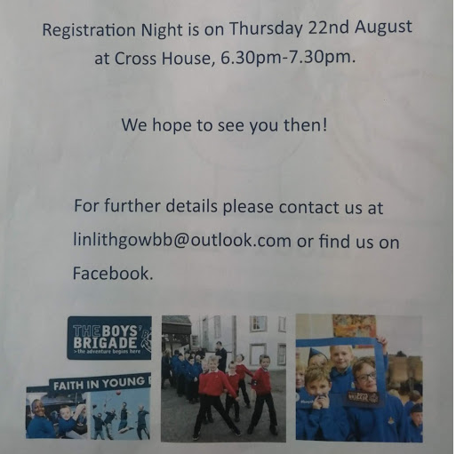 The Boys Brigade registration Night is on Thursday 22nd August at Cross House, 6:30pm-7:30pm. We hope to see you then!