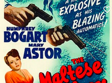 The Maltese Falcon, a 1941 American film noir written and directed by John Huston stars Humphrey Bogart as private investigator Sam Spade and Mary Astor as his femme fatale client. The story follows a San Francisco private detective and his dealings with three unscrupulous adventurers, all of whom are competing to obtain a jewel-encrusted falcon statuette.