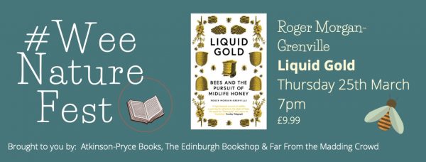 Kicking off the #Wee Nature Fest, Wee Three Indies are delighted to welcome Roger Morgan-Grenville. He will discuss how a chance meeting in a pub led to a quest involving bees and the pursuit of midlife honey! Roger was a member of the Royal Green Jackets for nine years. He was also a founding member of Help for Heroes and has written several books. These include Not Out of the Woods and Unlimited Overs. Liquid Gold is a heart-warming, and very funny, exploration of beekeeping and how it led to some profound changes in Roger’s Life.